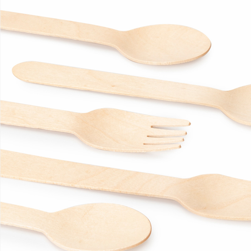 | Descrição do produto | Garfos, facas e colheres descartáveis de madeira biodegradáveis e ecológicas. |
