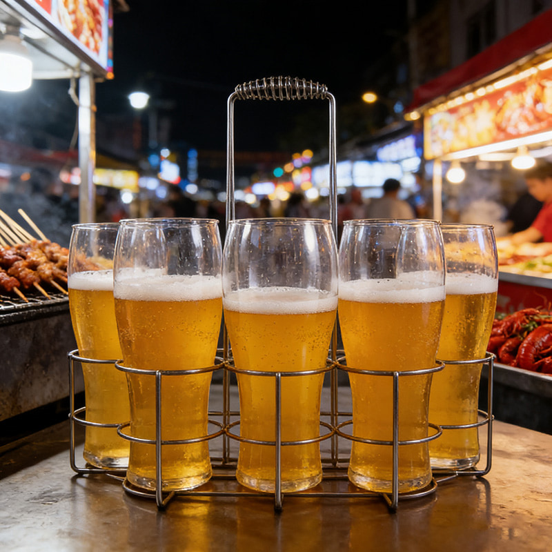 Capacidade ideal de 355 ml (12 oz)O tamanho clássico de 355 ml (12 oz) é ideal para servir cervejas comuns, cervejas artesanais, drinques ou porções generosas de bebidas não alcoólicas. A base larga e estável evita que o copo tombe em mesas movimentadas ou superfícies irregulares, enquanto a borda lisa e arredondada garante uma experiência confortável ao beber.