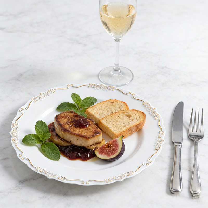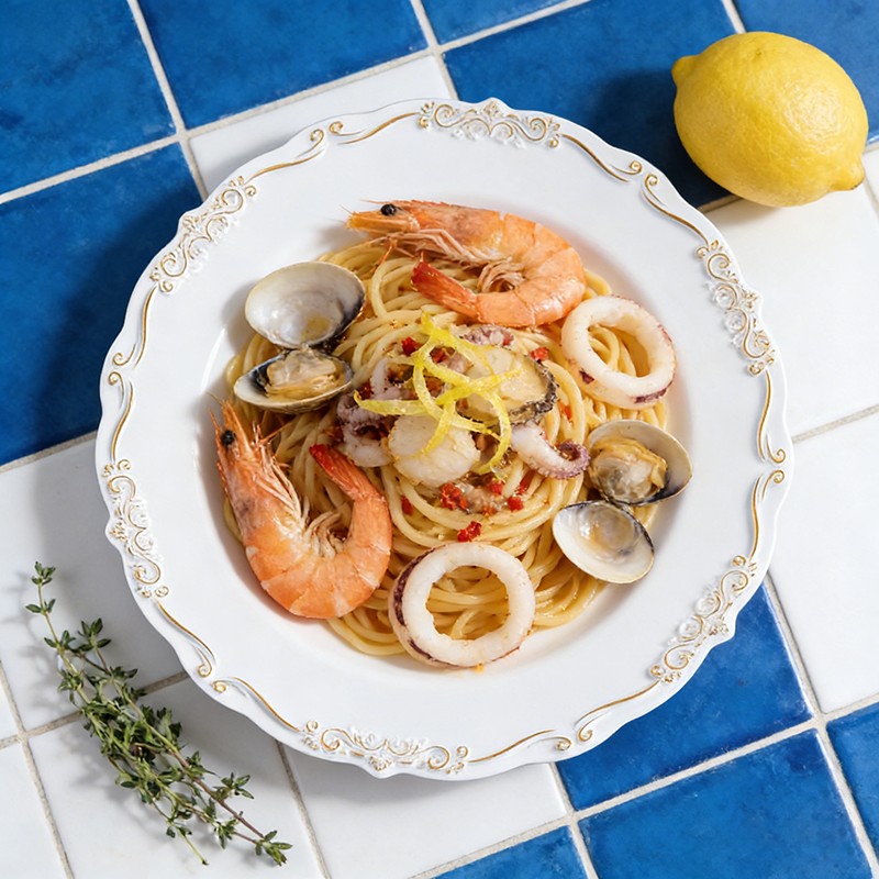 A borda rendada em relevo, com detalhes intrincados e de inspiração vintage, adiciona um toque romântico e sofisticado que imita a delicadeza da porcelana, tornando esses pratos ideais para casamentos luxuosos, eventos de gala e cerimônias formais.