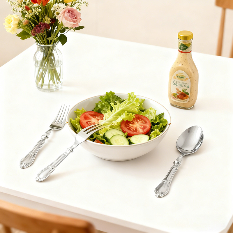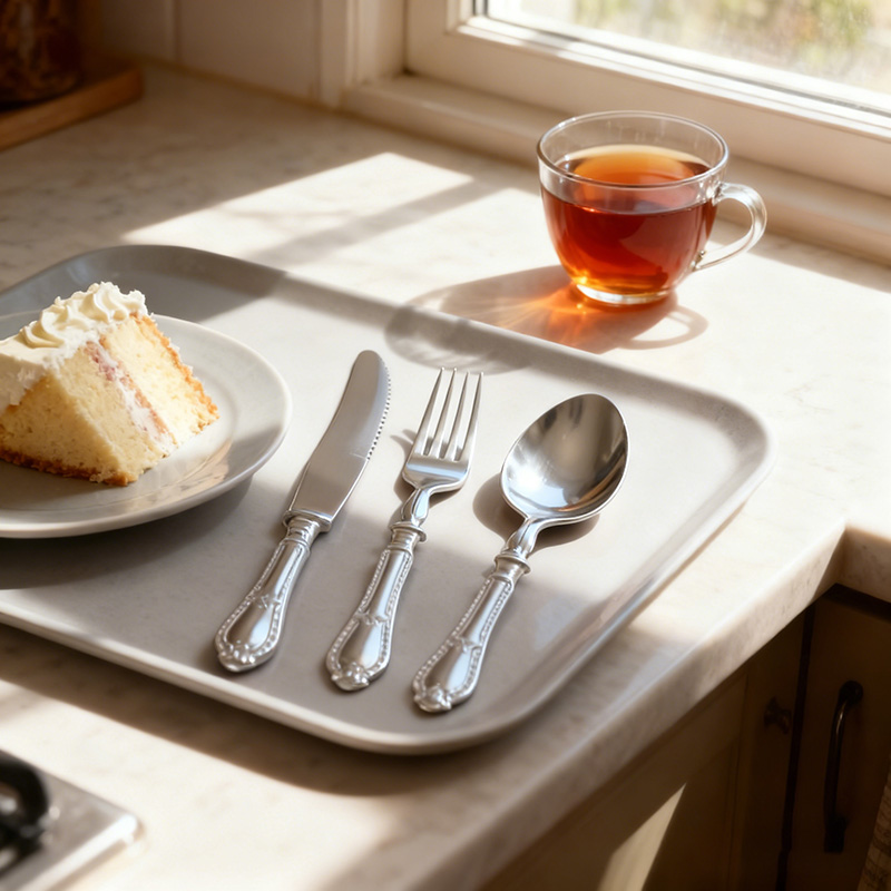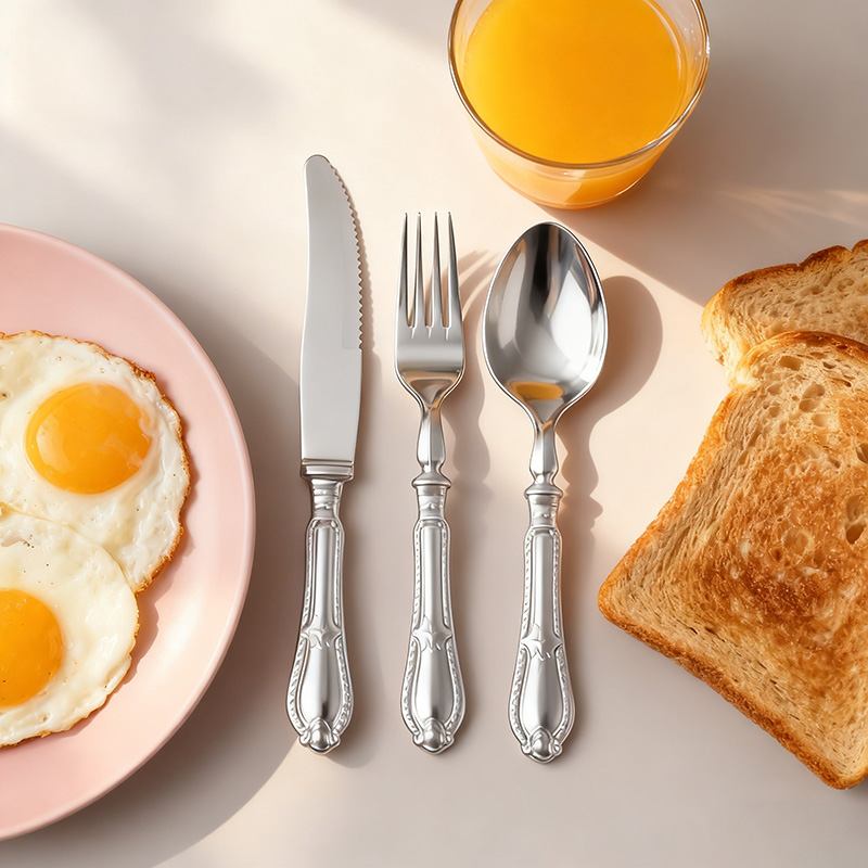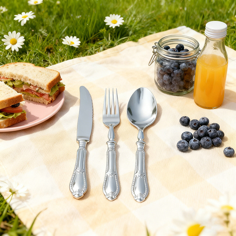 Design funcional prático: A faca corta assados, bolos e aperitivos sem esforço; o garfo espeta saladas e frutos do mar com segurança; a colher serve sopas e sobremesas com suavidade, atendendo a todas as necessidades gastronômicas em eventos e encontros.