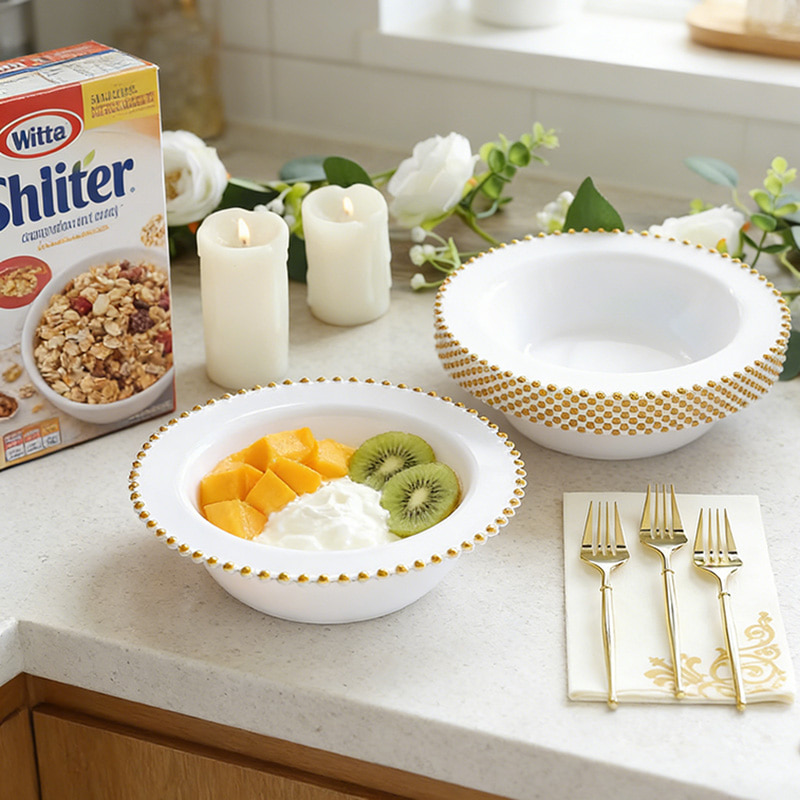 White bowl + gold pearl designFood-Grade, Heavy-Duty Material
